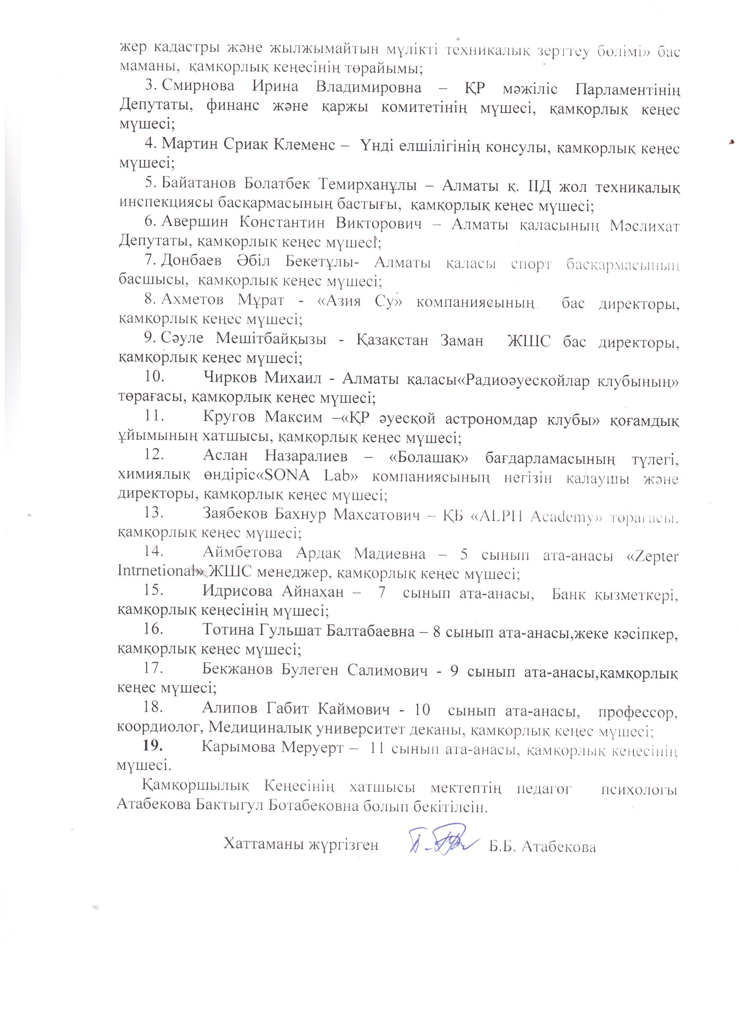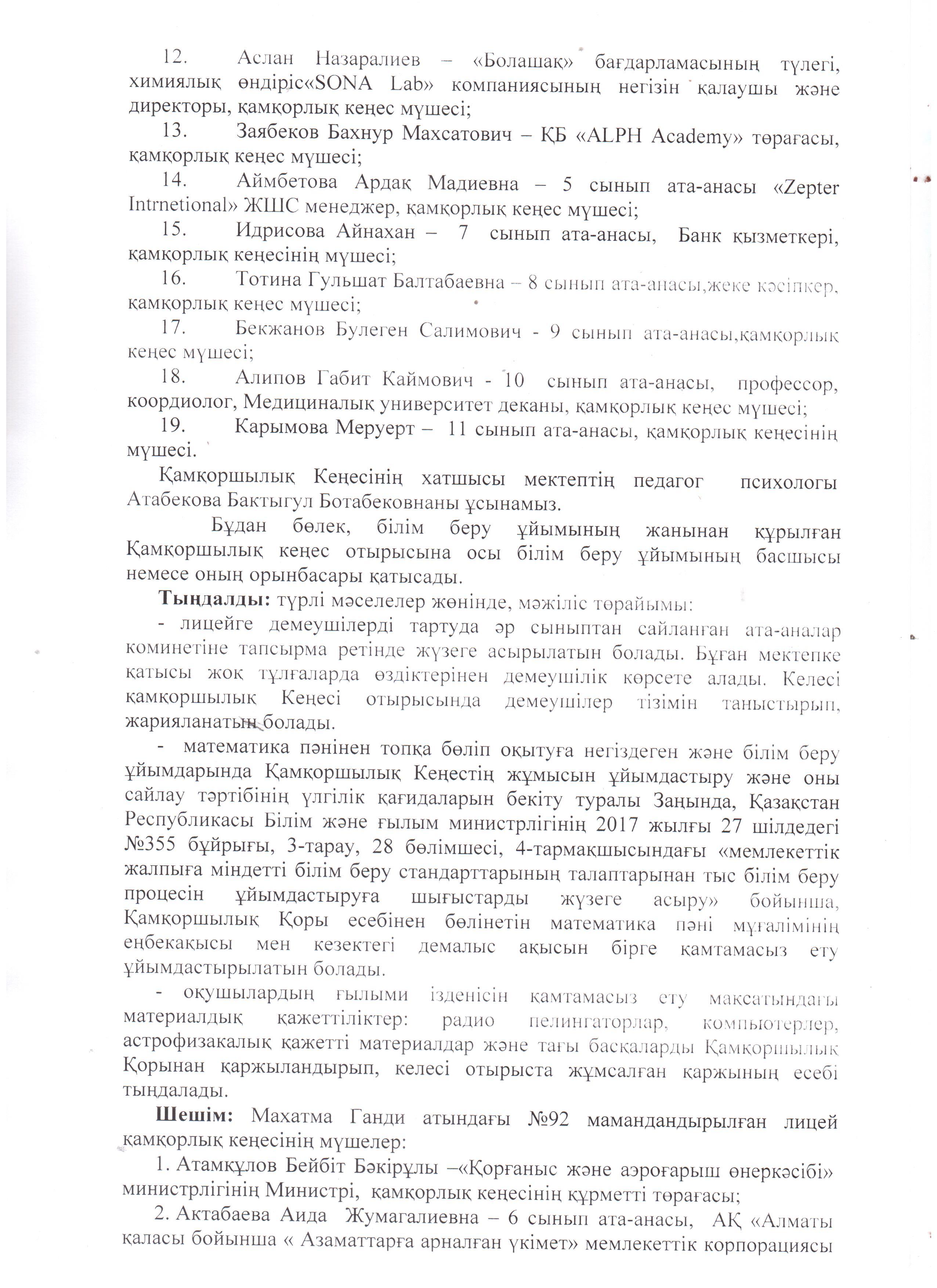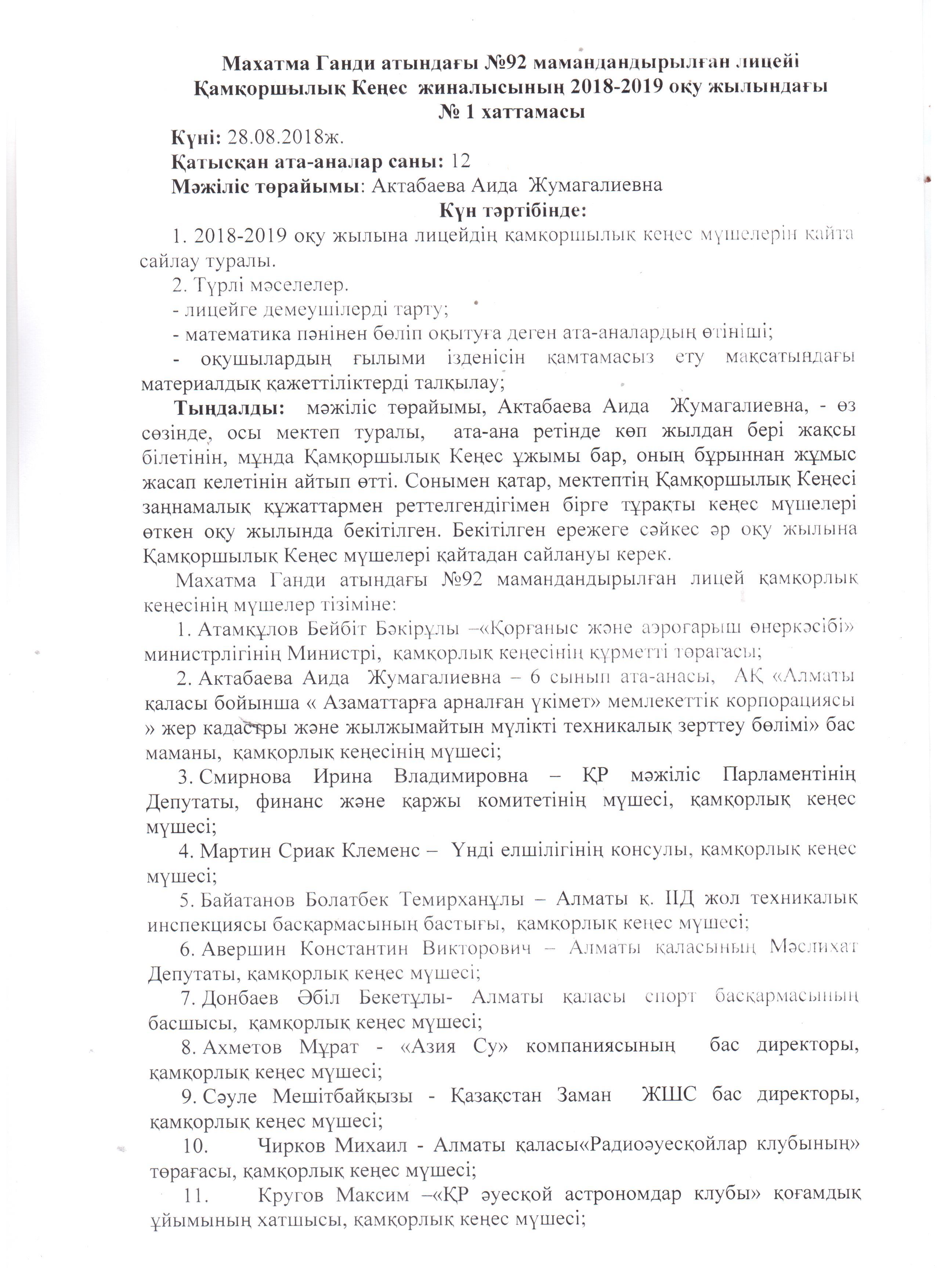 11 октябрь 2018 Қамқоршылық Кеңес жиналысының 2018-2019 оқу жылындағы №1 хаттамасы