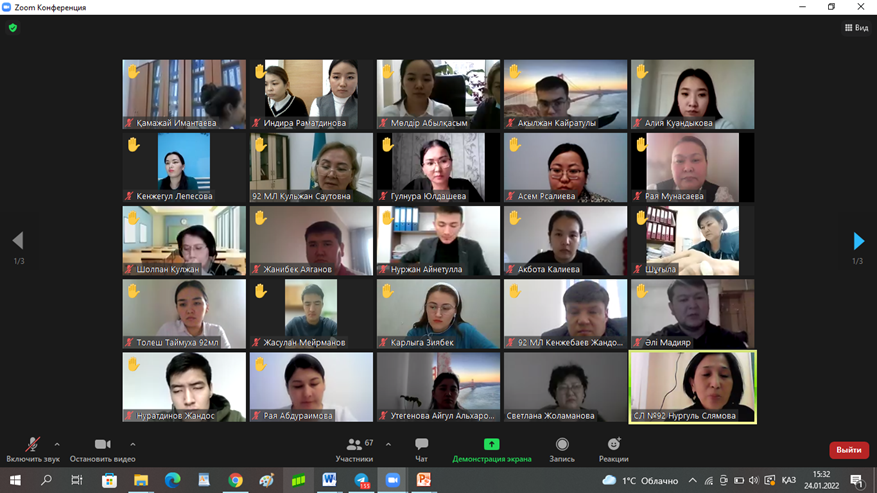 24.01.2022 жылы Махатма Ганди атындағы #92 мамандандырылған лицейде әдістемелік семинар өтті. Әдістемелік семинар тақырыбы: Қашықтықтан оқыту кезінде АКТ мен жұмыс және тиімді платформаларды сабақтарға қолдану. Информатика пәні мұғалімдері сабақта қолдануға арналған тиімді платформалармен және жаңа мүмкіндіктерімен таныстырды.