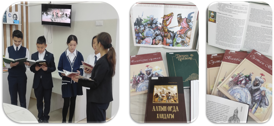 Қатысқан көрермендер 6- сынып оқушылары, көрнекілігі Сұлтан Бейбарыс жайлы бейне ролик пен көркем әдебиеттер.