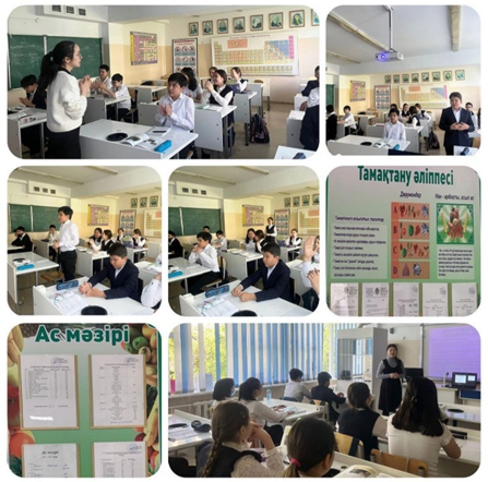 Түсіндірме жұмысы барысында оқушыларға тамақтану сауаттылығы, дұрыс тамақтану – денсаулықтың кепілі екендігі «Дұрыс тамақтану» тақырыбында презентация, видеоролик көрсету арқылы түсіндіріліп, «Денеге қан жүгірту» тренингі жүргізілді. Асханада тамақтану әліппесі мен ас мәзірі стендтері толықтырылды.