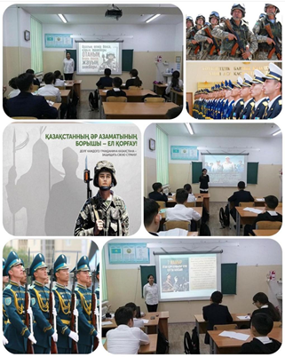 03.05.2022ж. күні 7- мамыр Отан қорғаушылар күніне орай өткізіліп отырған "Ерлікке тағзым" деген тақырыпта 7 «В» сынып оқушыларымен тәрбие сағаты өтілді.