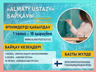 03 август 2022 0 1 2 3 4 5 “Almaty ustazy” байқауы “Almaty ustazy” байқауына 39 жасқа дейінгі ұстаздарды қатысуға шақырамыз!