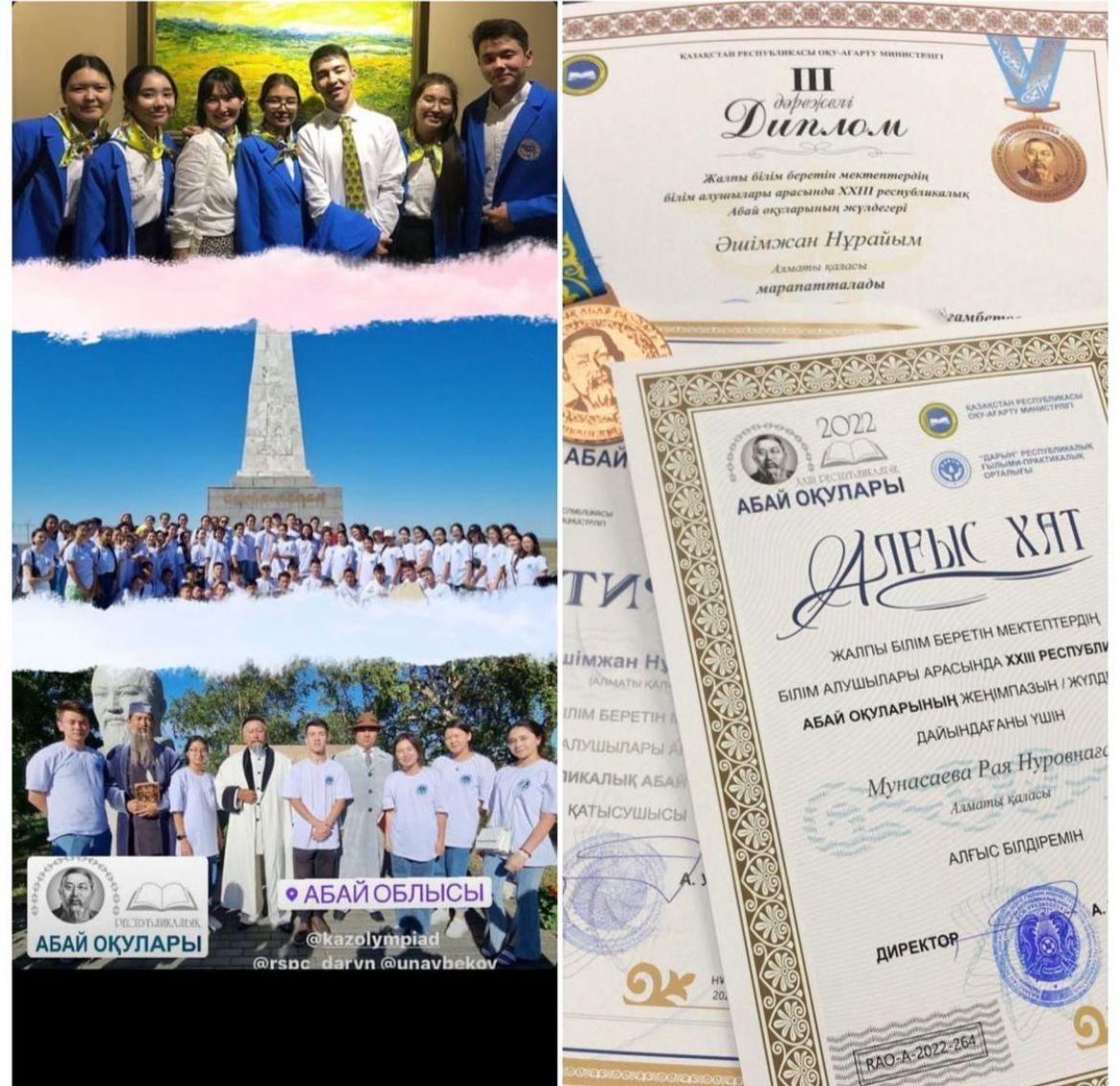 Жалпы білім беретін мектептердің білім алушылары арасында “ХХІІІ республикалық Абай оқуларынан” лицейіміздің 10 “А” сынып оқушысы Әшімжан Нұрайым ІІІ орын жүлдегері атанды.