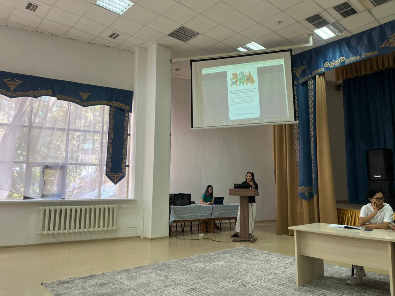 19.08.2022 жылы физика пәнінің мұғалімі Қарсыбаев Бексұлтан Махатма Ганди атындағы №92 лицейде өткізілген әдістемелік семинарда 1-12 тамыз 2022 жылы «10-11 сынып оқушыларының білім беру нәтижелерінің сапасын арттыру контексінде физика мұғалімдерінің пәндік құзыреттіліктерін дамыту» тақырыбы бойынша өткен курсында үйренген әдіс-тәсілдерімен бөлісті.