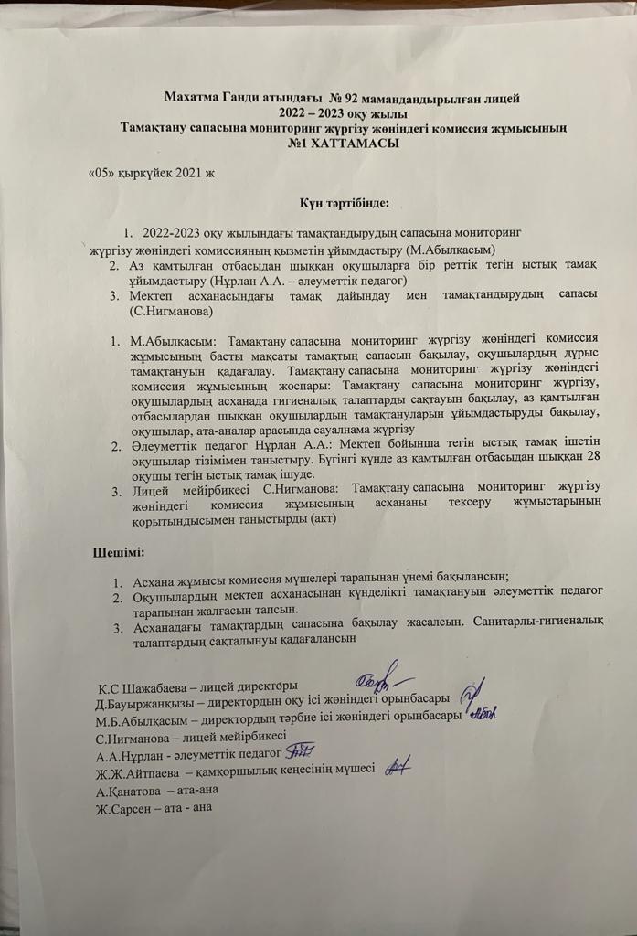 Тамақтану сапасына мониторинг жүргізу 2021-2022оқу жылы