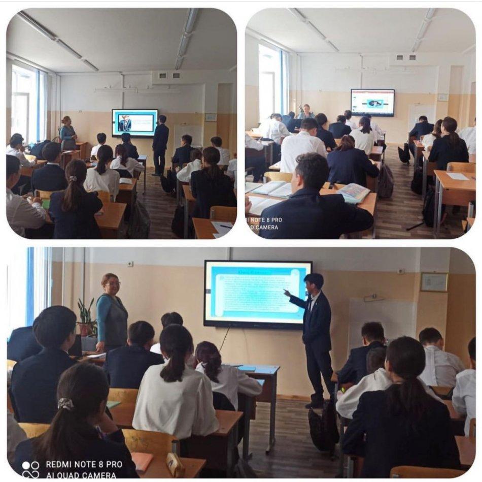 27 сентябрь 2022 0 1 2 3 4 5 Сынып сағаты: "Ш.Муртазаның 90 жылдық мерейтойы" 27 қыркүйек 2022 жылы 9 "Ә" сыныбында "Ш.Муртазаның 90 жылдық мерейтойы" тақырыбында сынып сағаты өткізілді. Сынып жетекшісі: Матаева Карлыгаш