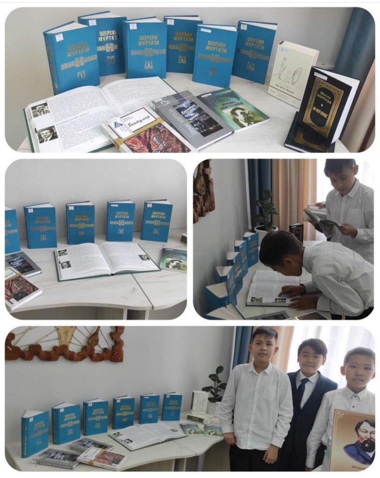 Бүгін, 29.09.2022 ж. күні 6 сынып оқушылардың қатысуымен Шерхан Мұртазаның 90 жылдығына орай кітапханада көрме ұйымдастырылды.