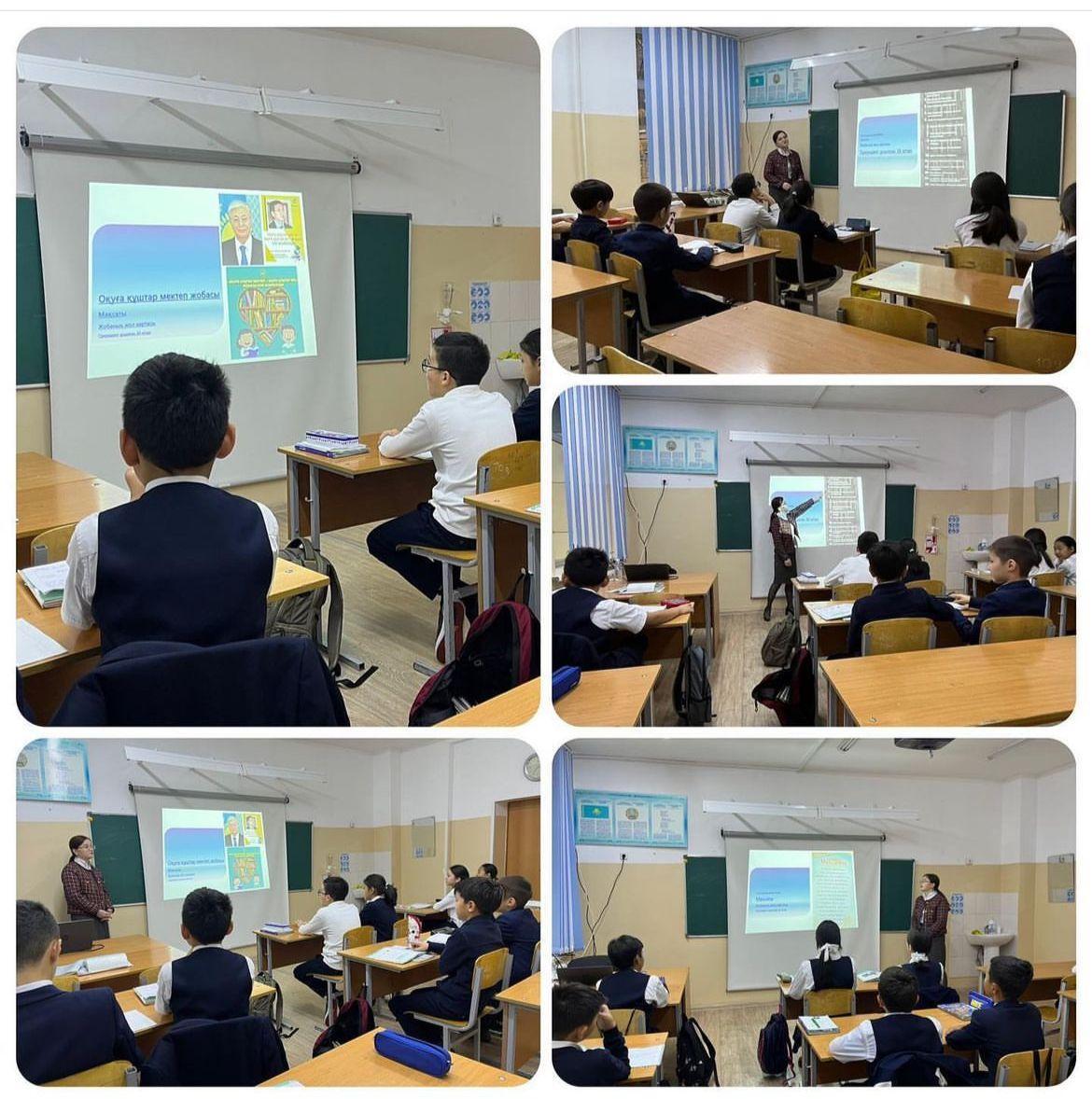 Бүгін, 18.10.2022 ж. күні, лицеймізде 6-сынып оқушыларына президентіміз Қ.Тоқаевтың бастамасымен іске асырылып жатқан “Оқуға құштар мектеп” жобасы туралы түсіндіру жұмысы жүргізілді. Жалпы жобаның мақсаты мен міндеті және президентіміз ұсынған оқуға керек 30 кітап оқушыларымызға таныстырылды.