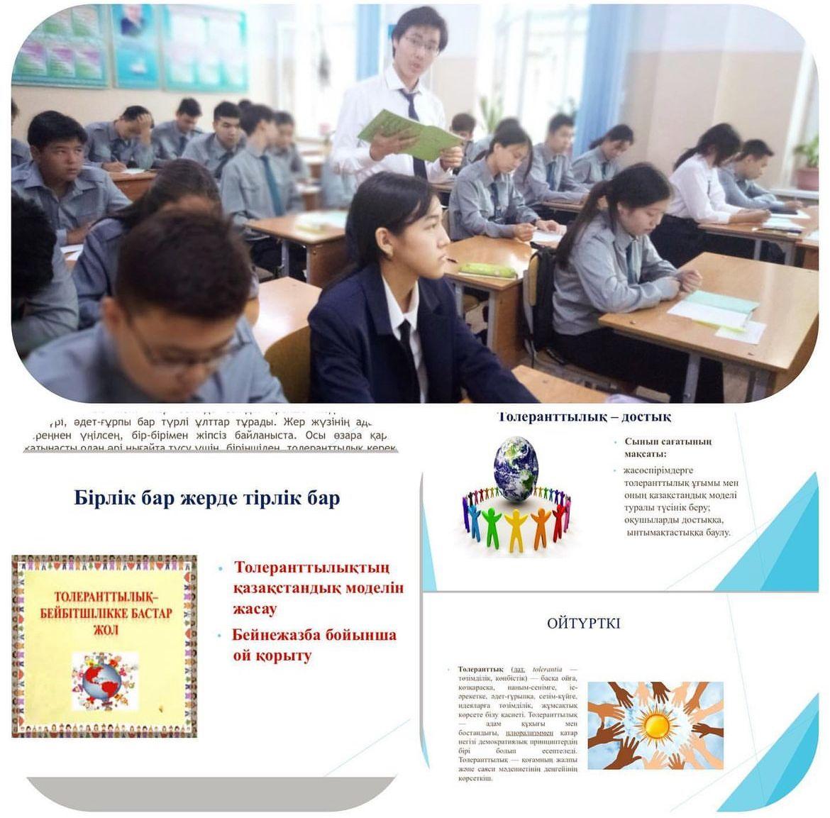 08 ноябрь 2022 0 1 2 3 4 5 Сынып сағаты: «Толеранттылық - ол достық» 8.11 2022 ж. күні лицейіміздің 10 «А» сынып оқушыларына «Толеранттылық - ол достық» тақырыбында сынып сағаты өтілді.Сынып жетекшісі: Мунасаева Рая Нуровна