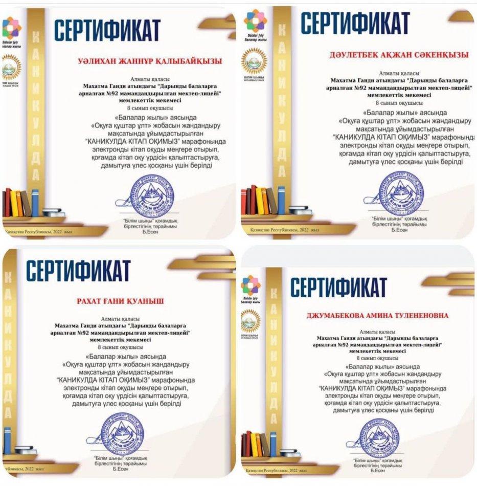 8 "В" сынып оқушылары демалыс кезінде "Каникулда кітап оқимыз" марафонына қатысып, кітап оқу үрдісінің дамуына үлес қосты.?