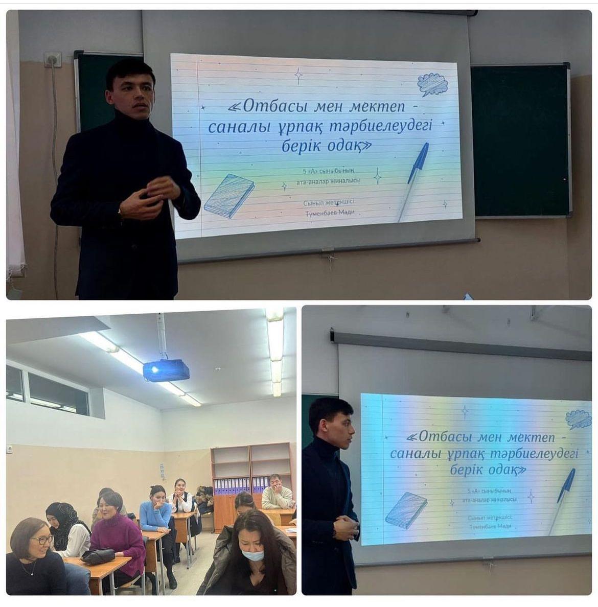 18.11.2022 ж. күні 5 «А» сыныбында “Отбасы мен мектеп - саналы ұрпақ тәрбиелеудегі берік одақ” тақырыбында ата-ана жиналысы өтті.