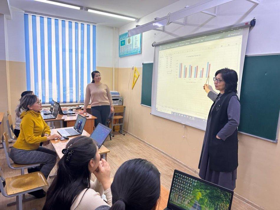 Тоқсан қорытындысын диаграмма бойынша өсу мен кему тұстары көрсетіліп, анықтама жазылды.Сабақта өз тәжірибелері бойынша мұғалімдер тиімді әдіс- тәсілдерімен бөлісті.Айлық іс- шарасын бойынша әртүрлі идеялар айтылып, жоспар құрылды.