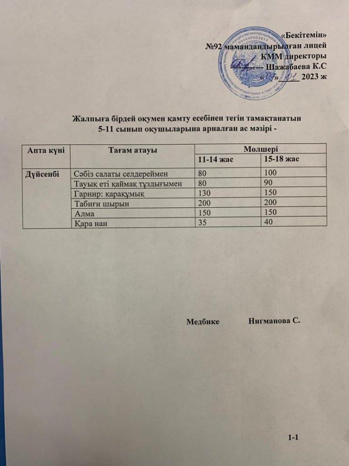 Ас мәзірі-09.01.2023 жыл