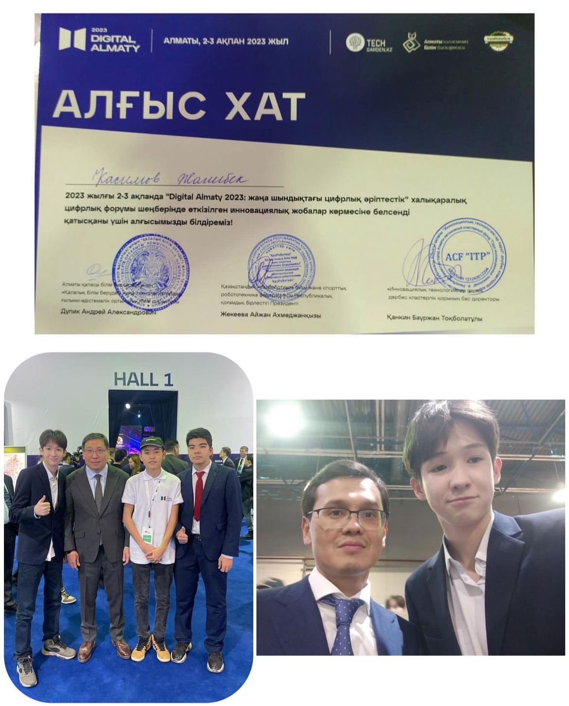 2023 жылғы 2-3 ақпанда «Digital Almaty 2023: жаңа шындықтағы цифрлық әріптестік» халықаралық цифрлық форумы шеңберінде өткізілген инновациялық жобалар көрмесіне белсенді қатысқаны үшін лицейіміздің оқушысы Касимов Жәнібек алғыс хатпен марапатталды!???