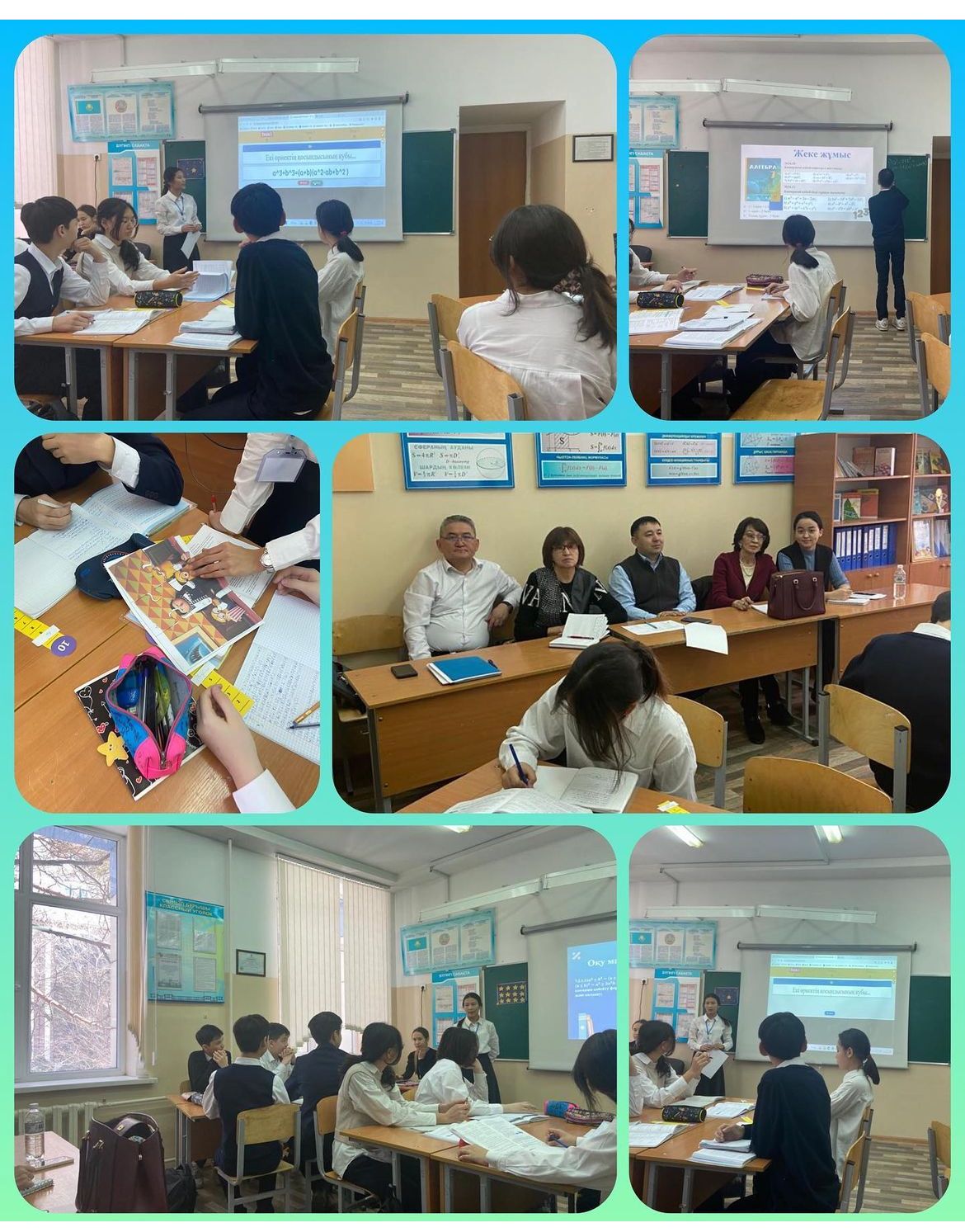 Ең алдымен оқушыларды жасырын суреттердің көмегімен топқа бөліп, жеке, жұптық, топтық тапсырмалар орындады. Жаңа материалды меңгерту барысында, Bamboozle бағдарламасы, «Пазл» әдісі, «Жетістік таблосы», «Ойлан,бірлес,бөліс!» әдістерін тиімді пайдалана білді.