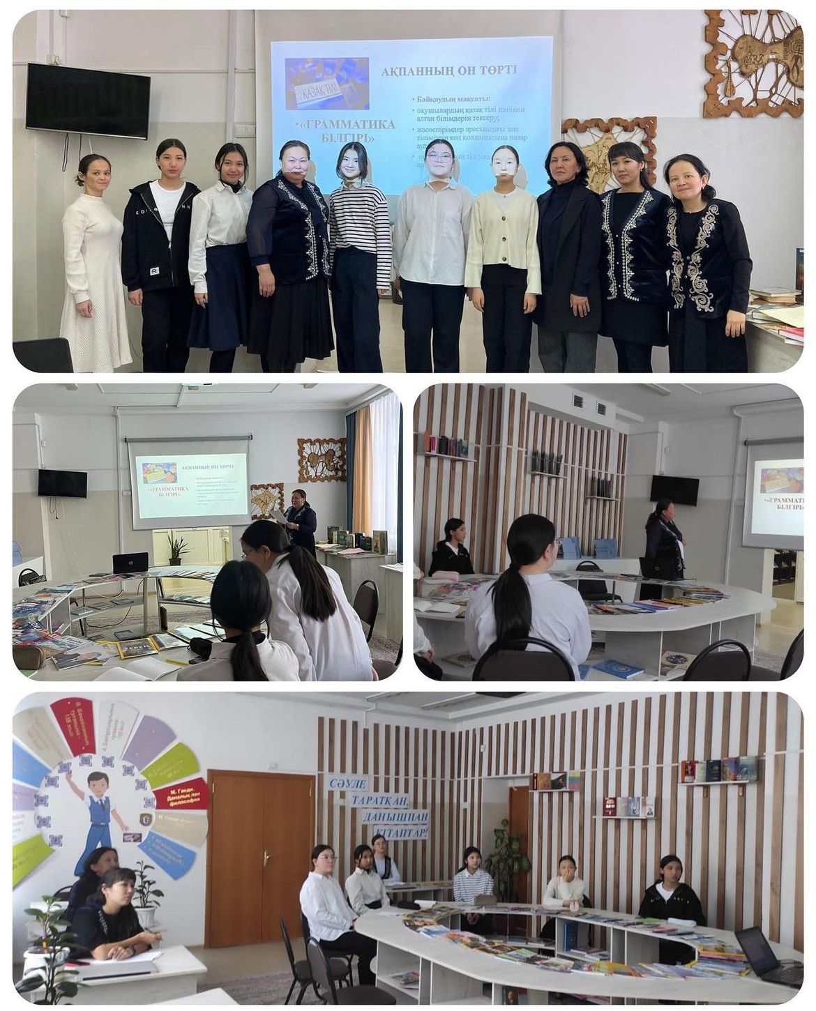 14 ақпан 2023 жылы қоғамдық-гуманитарлық пәндер мұғалімдері кафедрасының онкүндігі аясында қазақ тілі мен әдебиеті пәнінің мұғалімі, педагог-шебер Мунасаева Р.Н. 9-сынып оқушыларының арасында «Грамматика білгірі» сайысын өткізді.