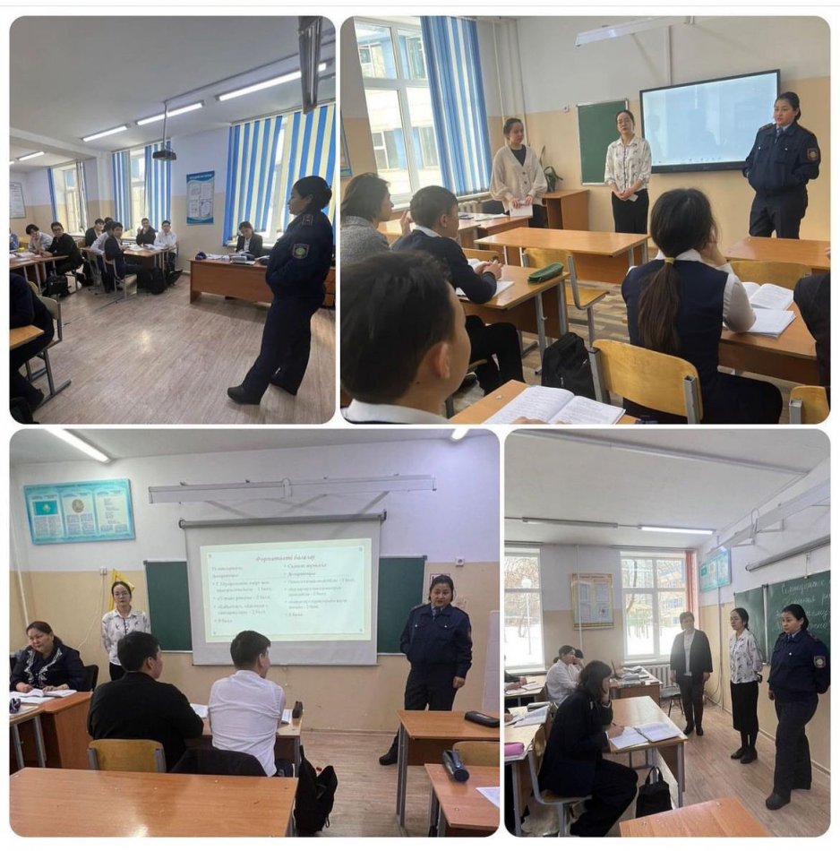 17.02.2023ж. күні лицейде “Құқық бұзушылықтың алдын алу - басты міндет” тақырыбында лицей инспекторы оқушыларға дәріс өтті.