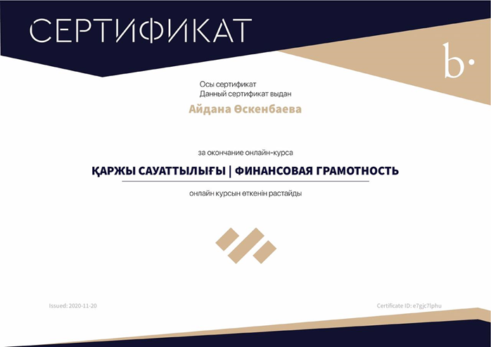 М.Ганди атындағы №92 мамандандырылған лицей оқушылары да “Елбасы Медалі” жобасына қатысып, онлайн-курстардан өткенін растайтын сертификаттарға ие болды. Айта кетер болсақ, 11 «В» сынып оқушысы Өскенбаева Айдана Анарбайқызы осы жоба аясында «Көшбасшылық» және «Қаржы сауаттылығы» онлайн-курстарынан өткені үшін сертификаттармен марапатталды. Сынып жетекші: Қ.Төреқұлов.