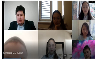 Оқушылар онлайн жағдайында өздерінің таныстырылымдарын жақсы қорғай алды және оқушылар арасында қызу талқылау болды. Мұғалім өзінің сабақта көздеген мақсатына жетті. Ашық сабаққа бірнеше мұғалімдер қатысты.