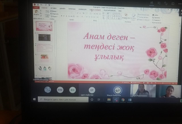 02.03.2021 күні халықаралық әйелдер мерекесінің қарсаңына қарай М.Ганди атындағы №92 мамандандырылған лицейдің 6 ”ә” сынып оқушыларымен “Анам деген - теңдесі жоқ ұлылық” атты сынып сағаты өткізілді. Сынып сағаты практикант студенттің қатысуымен іске асты және өткізілу барысында оқушылардың шығармашылық, тәрбиелік қабілеттерін арттыратын көрнекіліктермен жұмыс жасалды және ойындар ойнатылды.