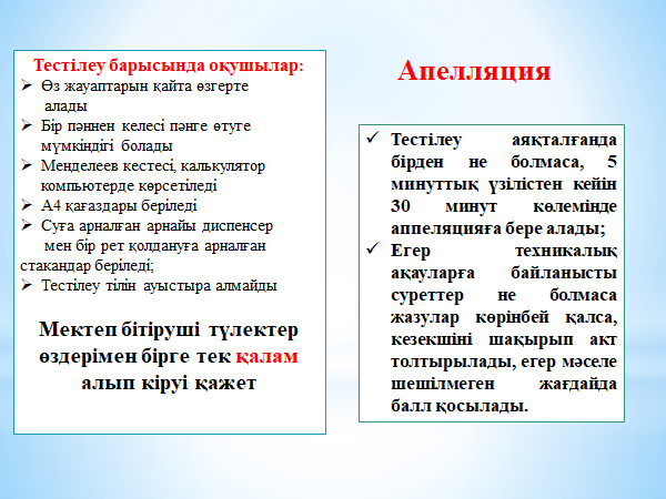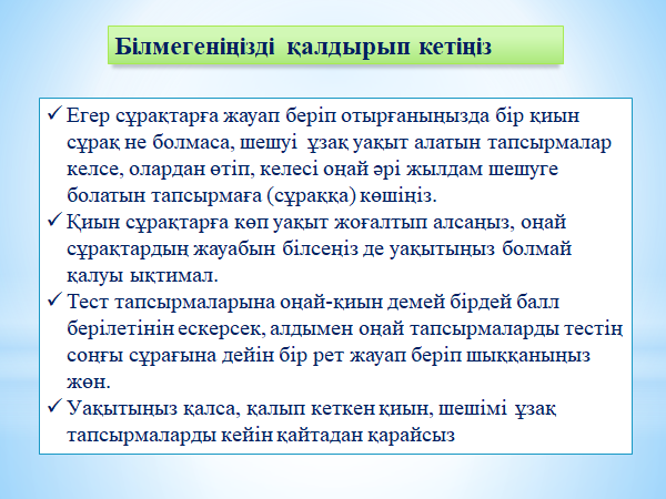 Мектеп бітіруші түлек өзі қалаған кез келген уақытта тест тапсыра алады