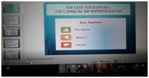 Сабақ барысында оқушылар жаңа «музыкалық аспаптар құрастыру» тақырыбымен танысты. Оқушыларға музыкалық аспаптар түрлерін презентация арқылы таныстырып, әр аспапқа қысқаша ақпарат беріп өтті. Таныстыру барысында өздерінің көрген білген аспаптарын айтып отырды. Әр аспапқа жеке-жеке тоқталып, қайдан шыққанын, қалай жасалғандығын және де аңыз әңгімелерге сүйене отырып түсіндірді.