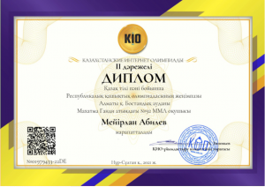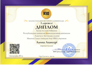 "Қазақ тілі" пәні бойынша Республикалық қашықтық олимпиадасына қатысқан Махатма Ганди атындағы №92 МЛ 8"А" сынып оқушылары ЕРГАЛИЕВ ЕРАСЛАН I дәрежелі дипломмен, АХАНСЕРІ АМИНА  I дәрежелі дипломмен, АБИЛЕВ МЕЙІРЛАН II дәрежелі дипломмен марапатталды.Жетекшісі Мунасаева Р.Н.
