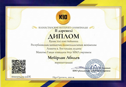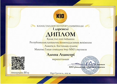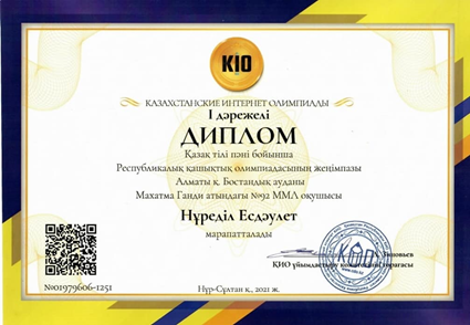қазақ тілі пәні бойынша Республикалық қашықтық олимпиадасынан жүлделі І,ІІ орын диплом иегерлері атанды.