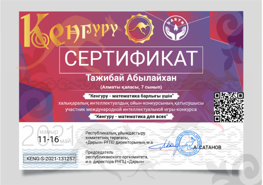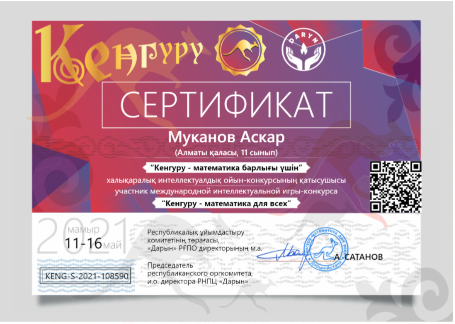 1. Муканов Аскар 11 Б сынып I дәрежелі диплом