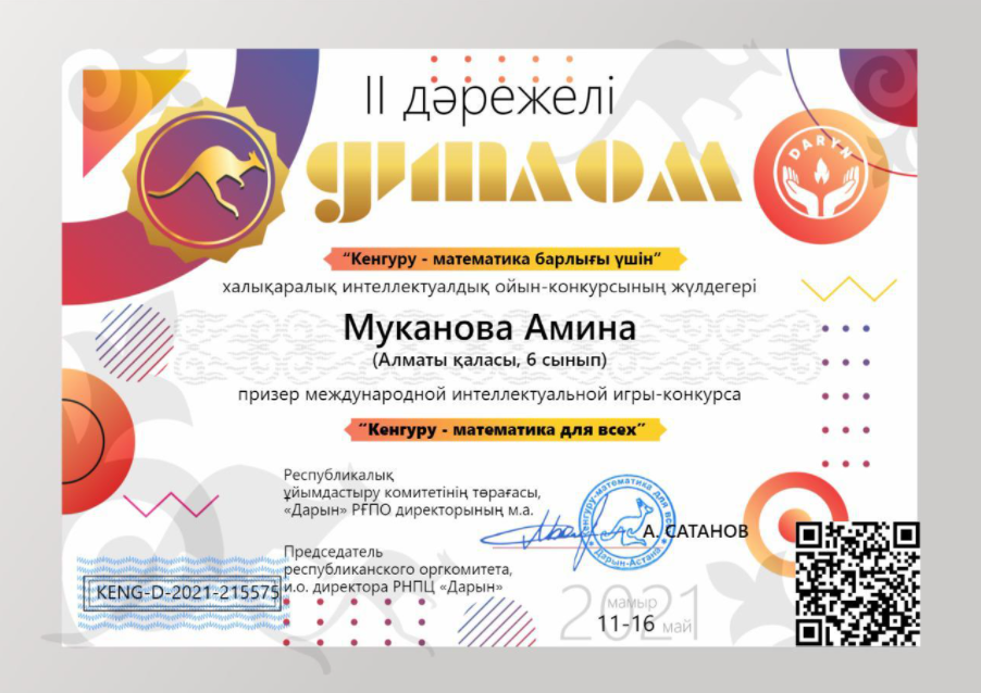 2. Муканова Амина 6 Б сынып II дәрежелі диплом
