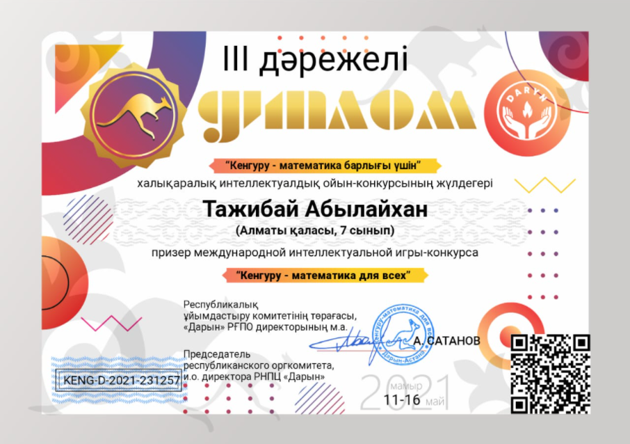 3. Тажибай Абылайхан 7 А сынып III дәрежелі диплом