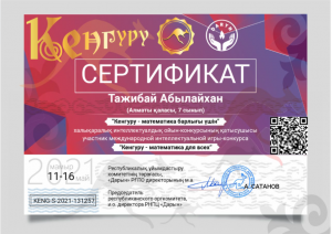 "КЕНГУРУ - МАТЕМАТИКА БАРЛЫҒЫ ҮШІН" ХАЛЫҚАРАЛЫҚ ЗИЯТКЕРЛІК КОНКУРСЫ