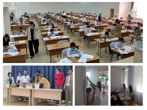 Аудиториялардағы тәртіп үшін белгіленген кезекші мамандар жауап береді. Комиссия мүшелері тапсырмаларды оқушылардың көзінше ашып, таратып берді.