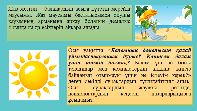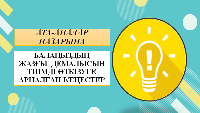 БАЛАҢЫЗДЫҢ ЖАЗҒЫ ДЕМАЛЫСЫН ТИІМДІ ӨТКІЗУГЕ АРНАЛҒАН КЕҢЕСТЕР