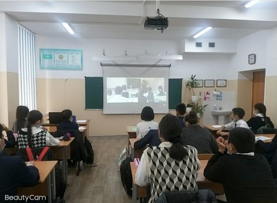Сабақ барысында видеоролик көрсетіліп, соған байланысты оқушылармен пікірталас болды.Оқушылар Ұстаз туралы хормен өлең айтты, эссе жазды және тапсырмалар орындады.