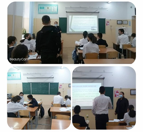 М.Ганди атындағы №92 мамандандырылған лицейде қоғамдық-гуманитарлық пәндер айлығының аясында қазақ тілі мен әдебиеті пәнінің мұғалімі Мунасаева Р.Н. 9 «А» сыныбында қазақ тілінен «Мәдени жаһандану. Ғылыми стильдің тілдік көріністері» тақырыбында ашық сабақ өткізді.