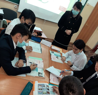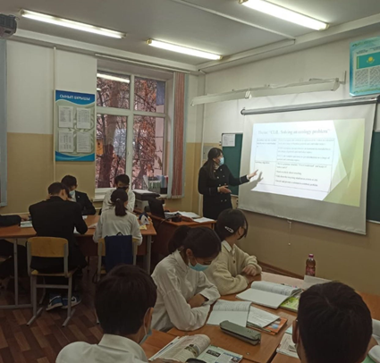 Махатма Ганди атындағы №92 мамандандырылған лицейінде ағылшын тілі пәні мұғалімі Кулжан Шолпан Шоханкызы "CLIL. Solving an ecology problems" тақырыбында 9 "Б" сынып оқушыларына ашық сабақ өткізді.