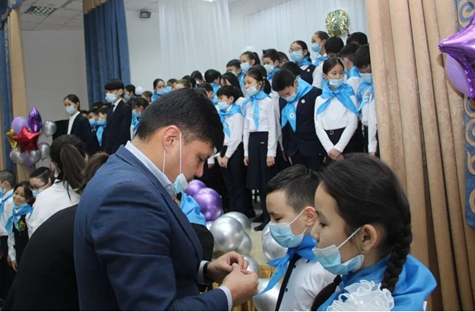 15 декабрь 2021 0 1 2 3 4 5 “Жас Ұлан” ұйымына қабылданған оқушылар “Жас Ұлан” ұйымына қабылданған оқушыларға туымыз түстес көгілдір галстук және төсбелгілерінің табысталған сәті15.12.2021ж