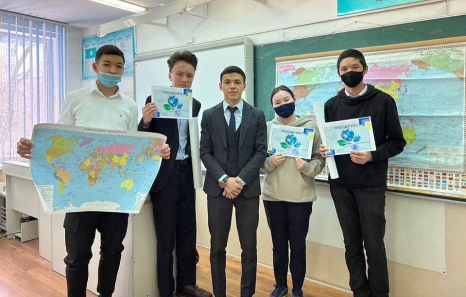 Сыныптан тыс іс-шараны ұйымдастырған география және жаратылыстану пәні мұғалімі: Мади Түменбаев