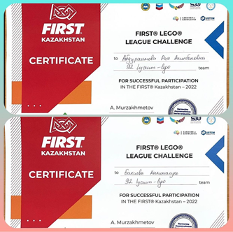 Алматы қаласы Білім басқармасымен ГЦНТО «Робототехника First Lego League» чемпионатына белсене қатысқаны үшін лицейіміздің оқушылары: