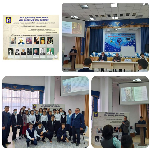 Махатма Ганди атындағы №92 мамандандырылған лицейінде 03.03.2022 ж. күні «Математика» кафедрасының ұйымдастыруымен «Ұлы дала математикасы және ұлы ғалымдары» тақырыбы аясында Абай атындағы Қазақ ұлттық педагогикалық университетінің, «Математика, физика және информатика институты», «Математика, физика және информатиканы оқыту әдістемесі» кафедрасының п.ғ.к., профессоры Қосанов Б. М. мен кездесу кеші өтті.