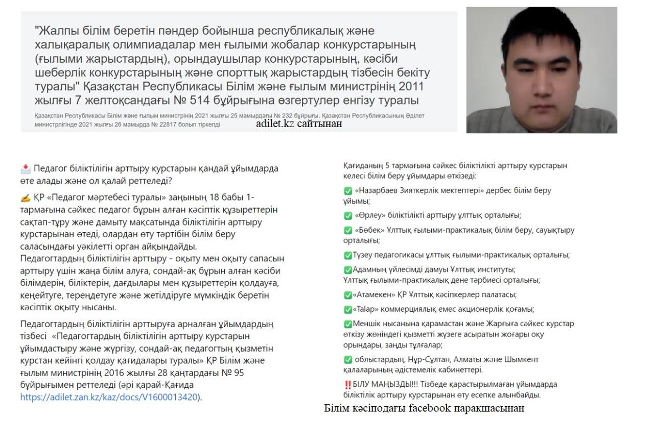 •ҚР білім және ғылым министрілігі бекіткен конкурстар мен жарыстар тізбесі таныстырылды;