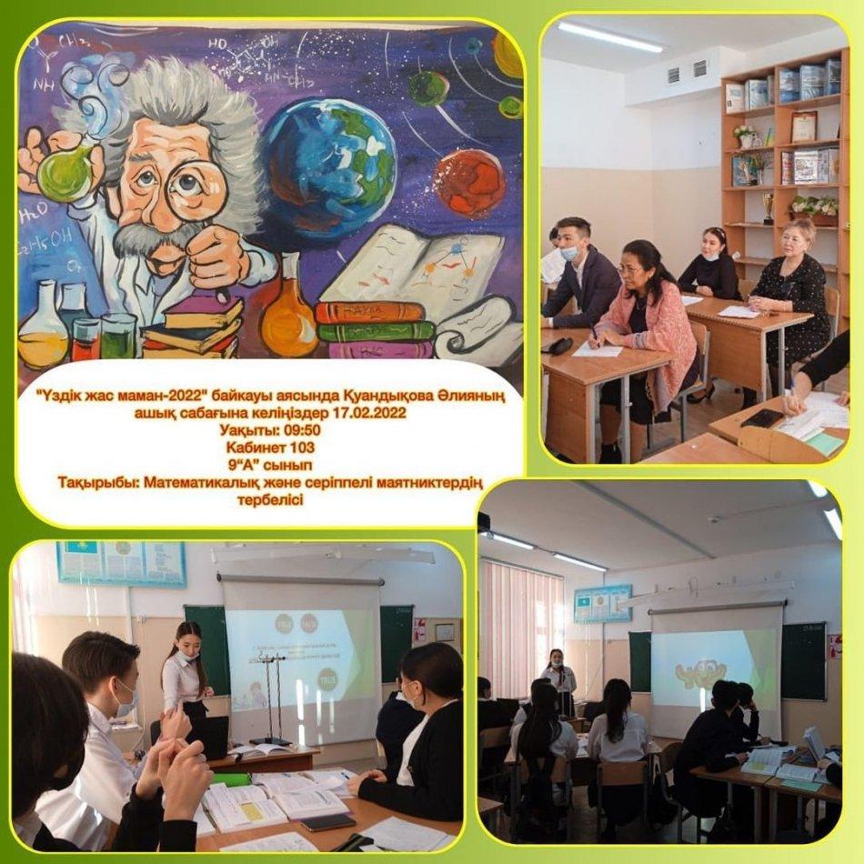 ?Мектепішілік «Үздік жас маман - 2022» байқауының екінші кезеңінің қатысушысы физика пәнінің мұғалімі Қуандықова Алияның ашық сабақ өту барысы? Ашық сабақ тақырыбы: Математикалық және серіппелі маятниктердің тербелісі