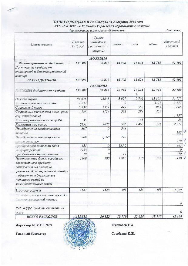 » Отчет о доходах и расходах за 2 квартал 2016г и пояснительная записка