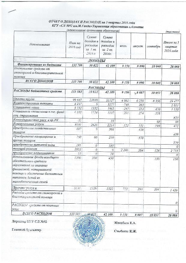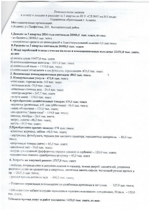 » Отчет о доходах и расходах за 3 квартал 2016г и пояснительная записка