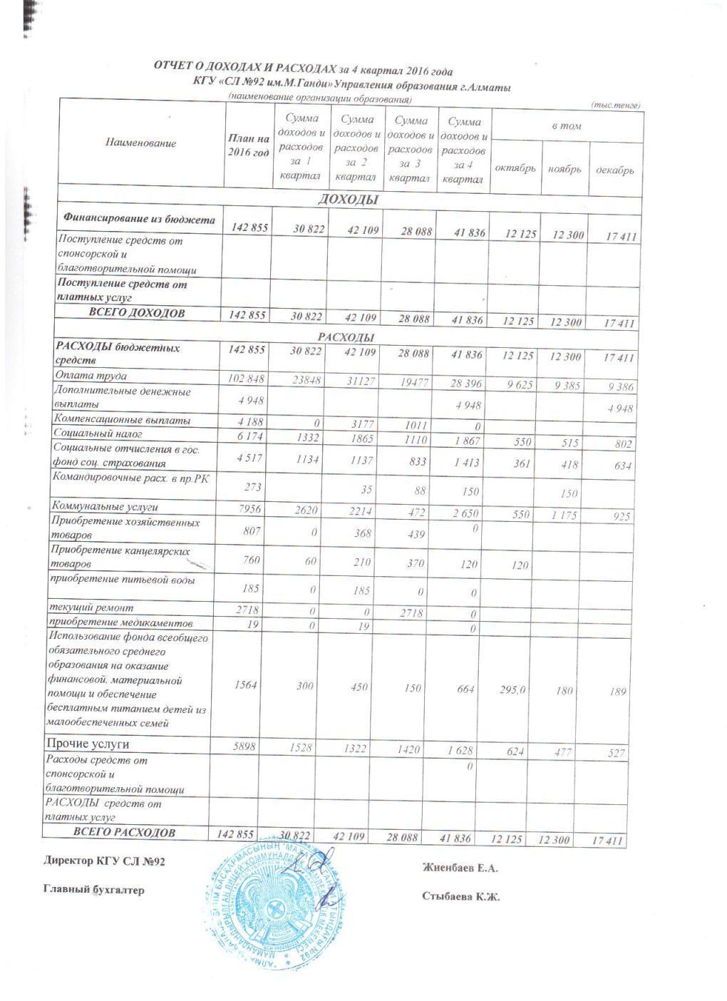» Отчет о доходах и расходах за 4-кв 2016г и пояснительная записка