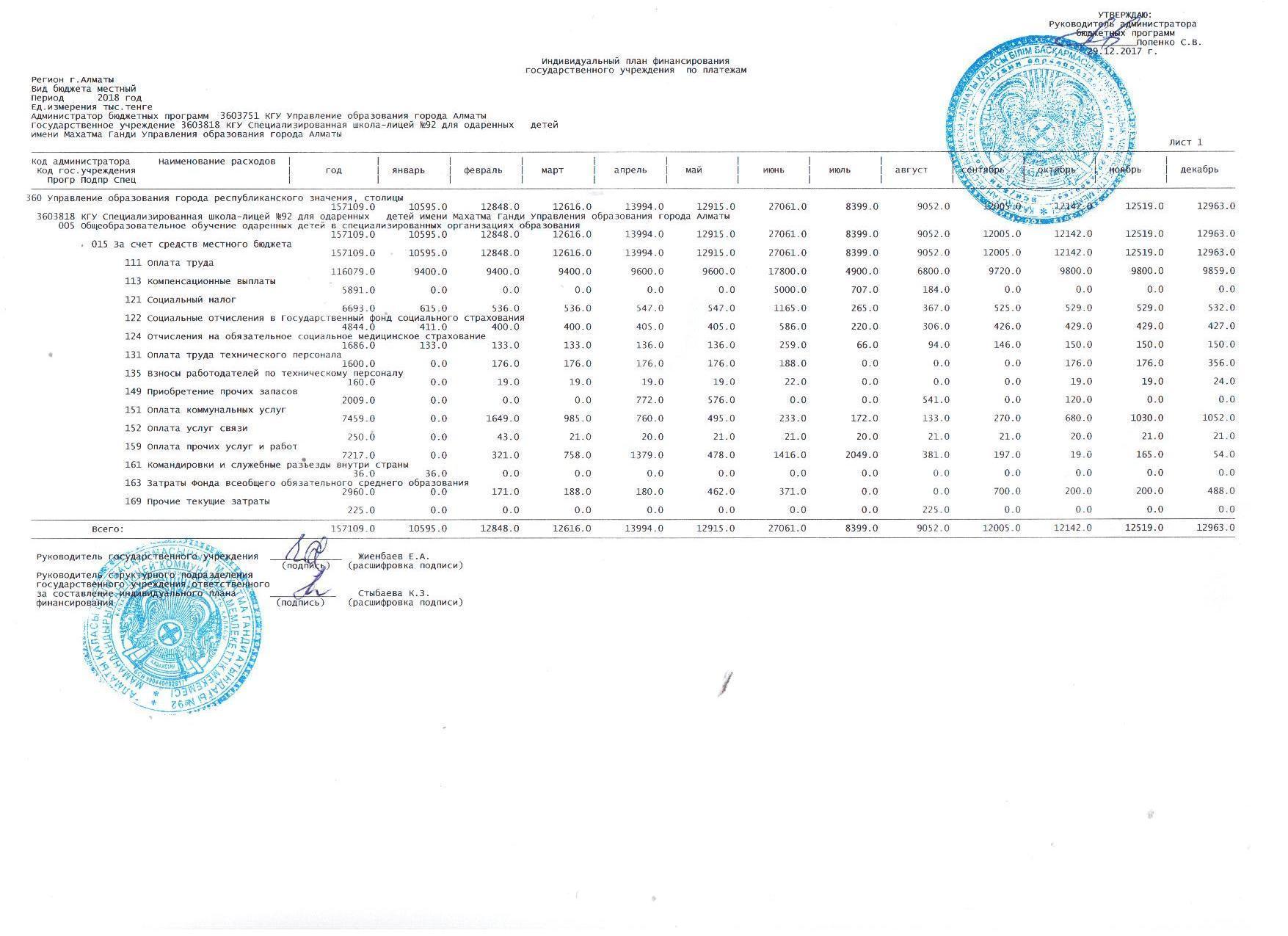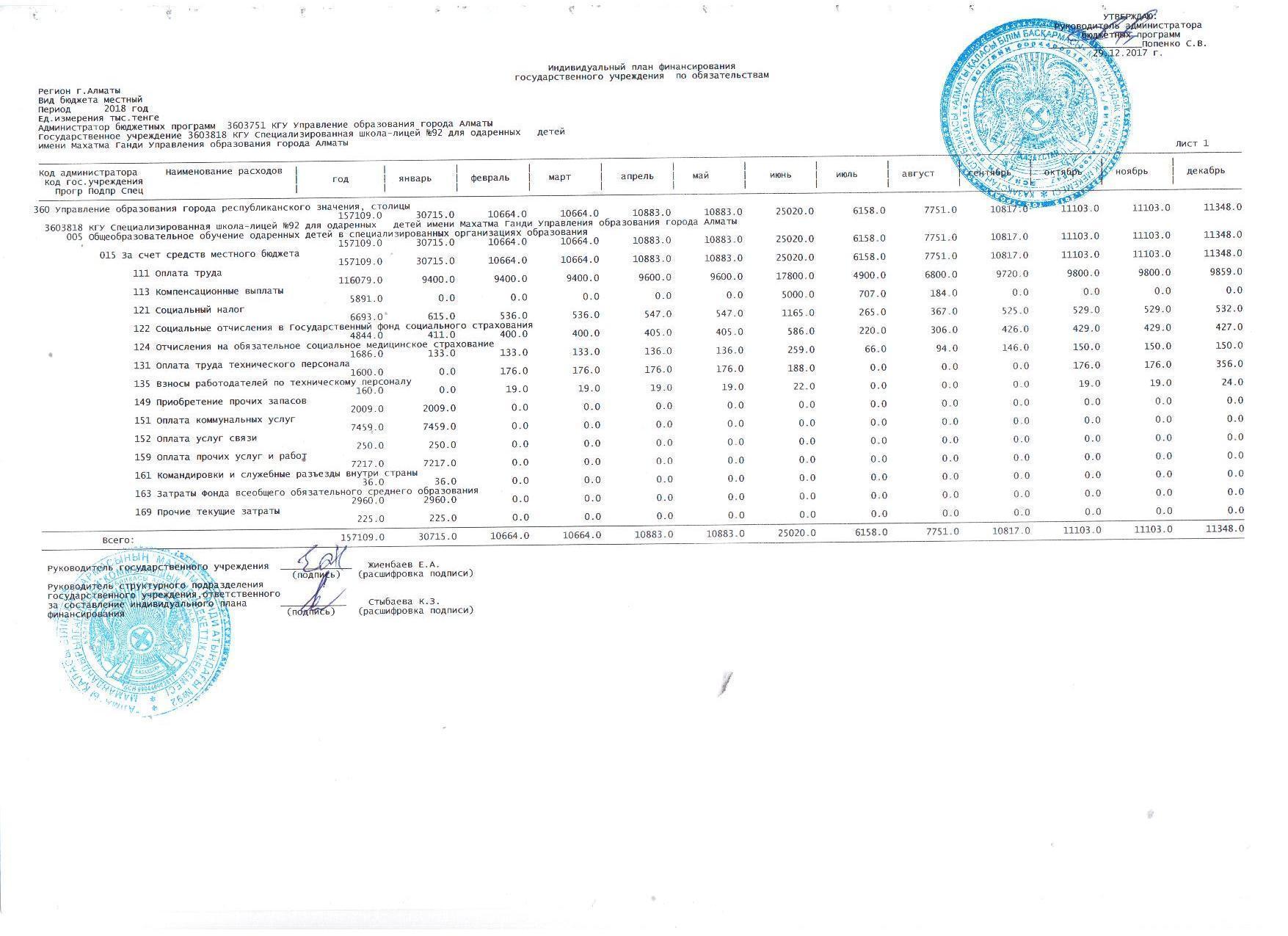 КГУ «Специализированный лицей №92 имени Махатма Ганди» Управления образования города Алматы