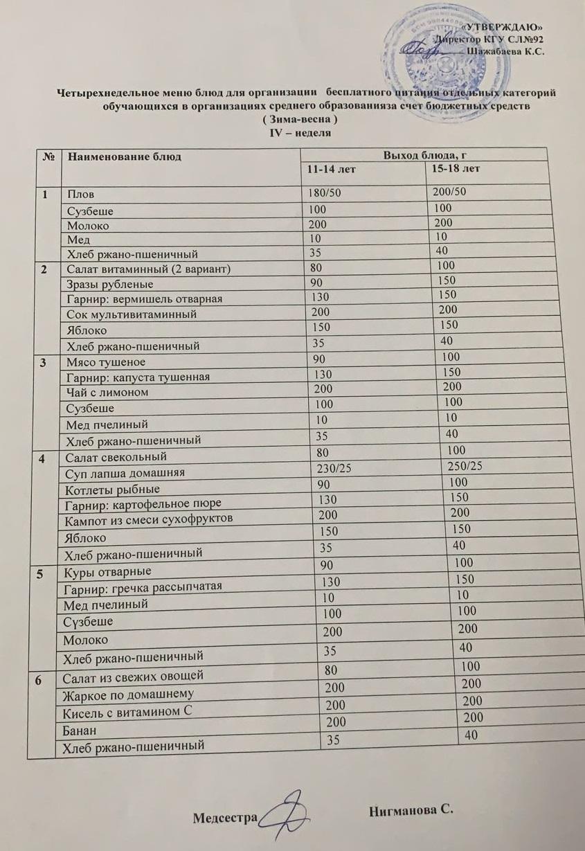 01 февраль 2022 0 1 2 3 4 5 Четырехнедельное меню блюд для организации беспалатного питания 2022г (зима-весна)